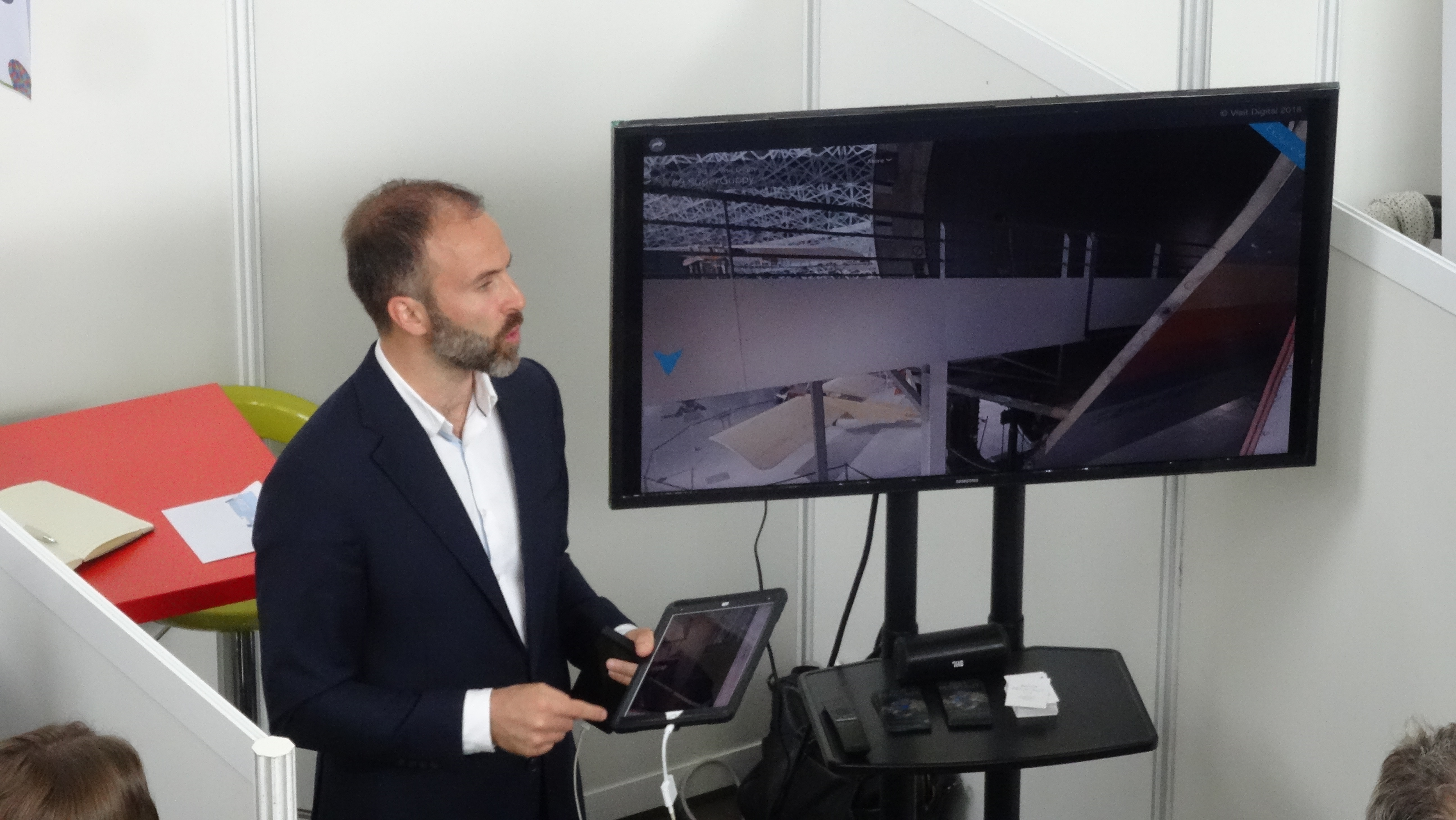 J’abordais le thème suivant : « Comment transformer l’expérience client à l’aide du numérique ? » et j’annonçais directement l’ambition de Visit Digital : « Que les entreprises rajoutent une 3ème dimension à leur communication »